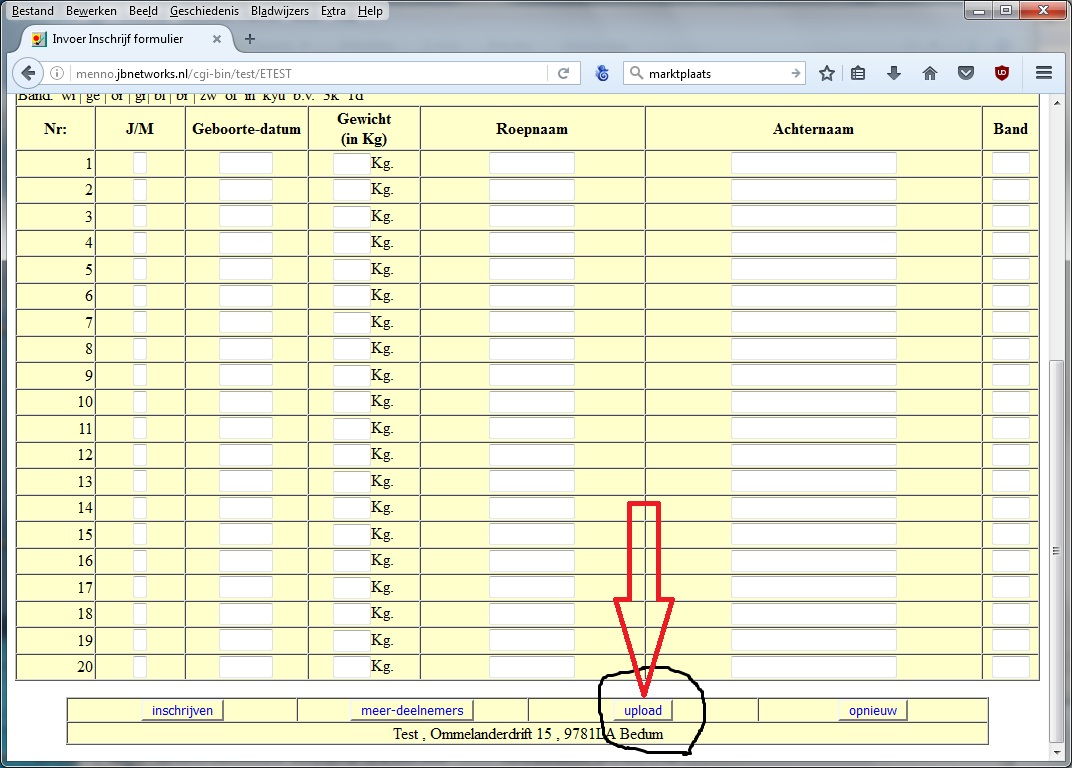 Moet je bij de inschrijving (onderaan) kiesen voor de knop "upload".